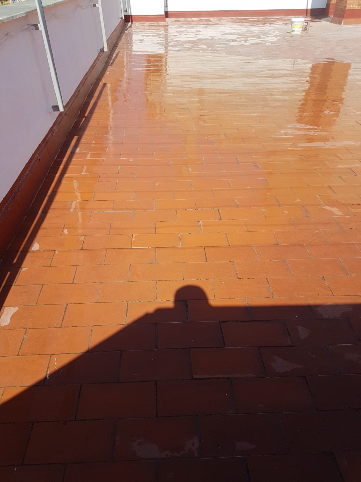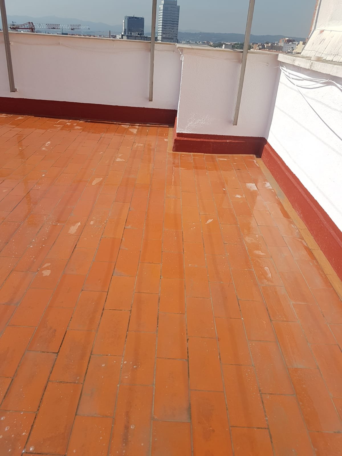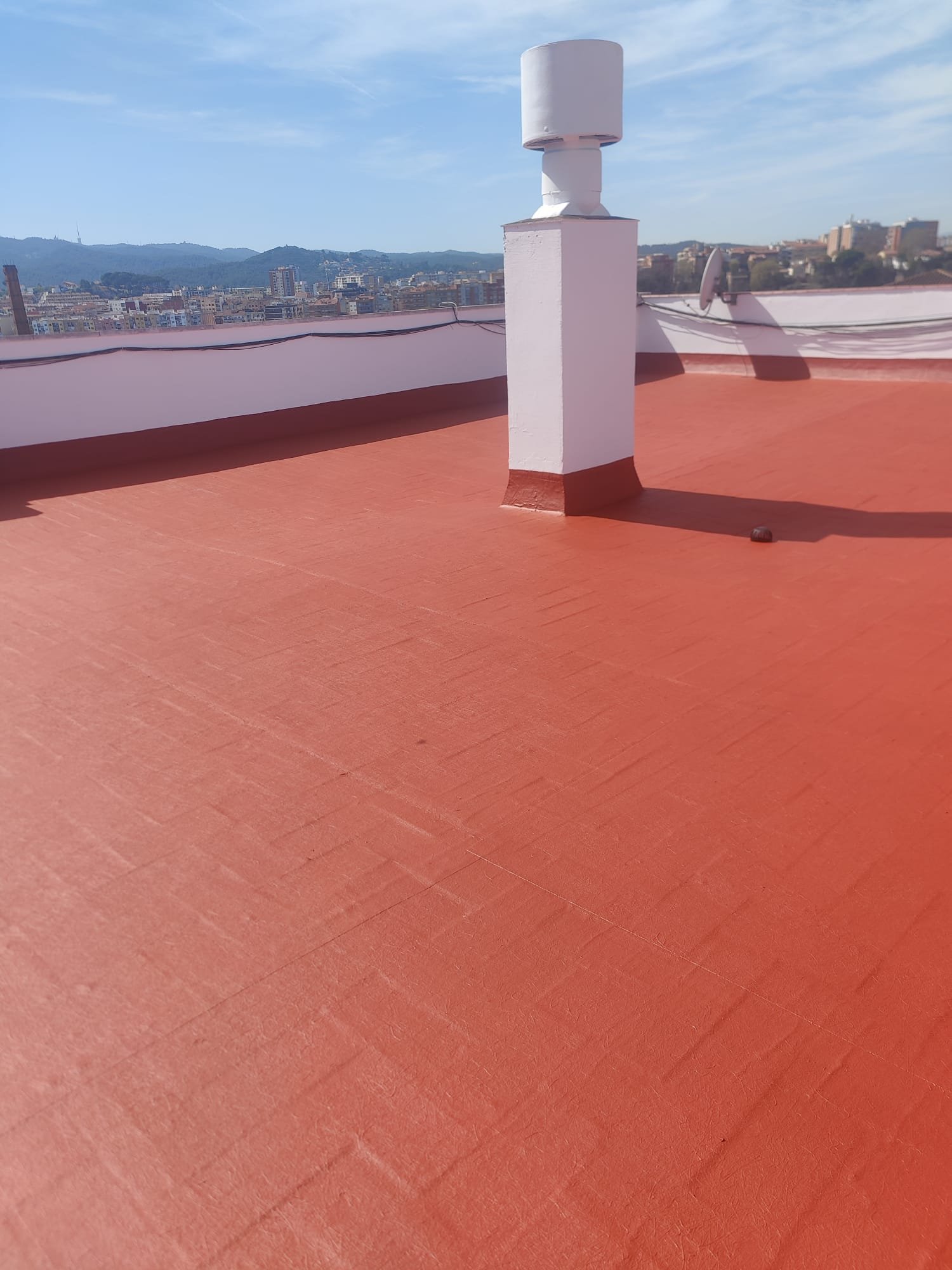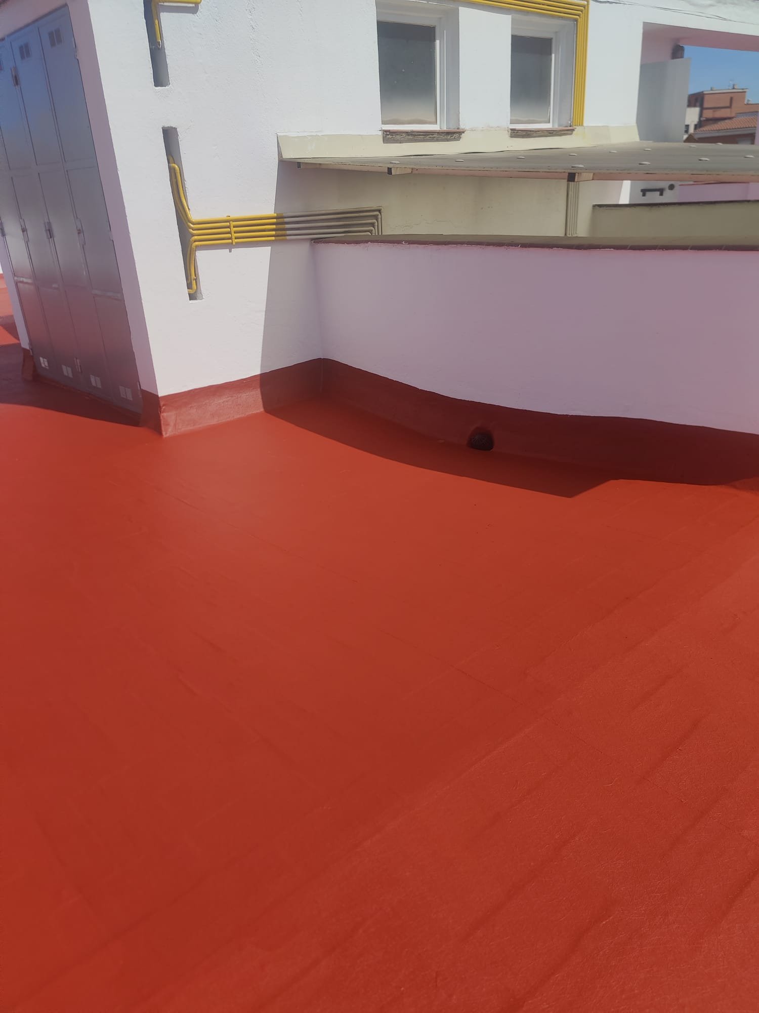 Refuerzo con fibra de vidrio y aplicación de clorocaucho en 2–3 manos. Encuentros, petos y sumideros.